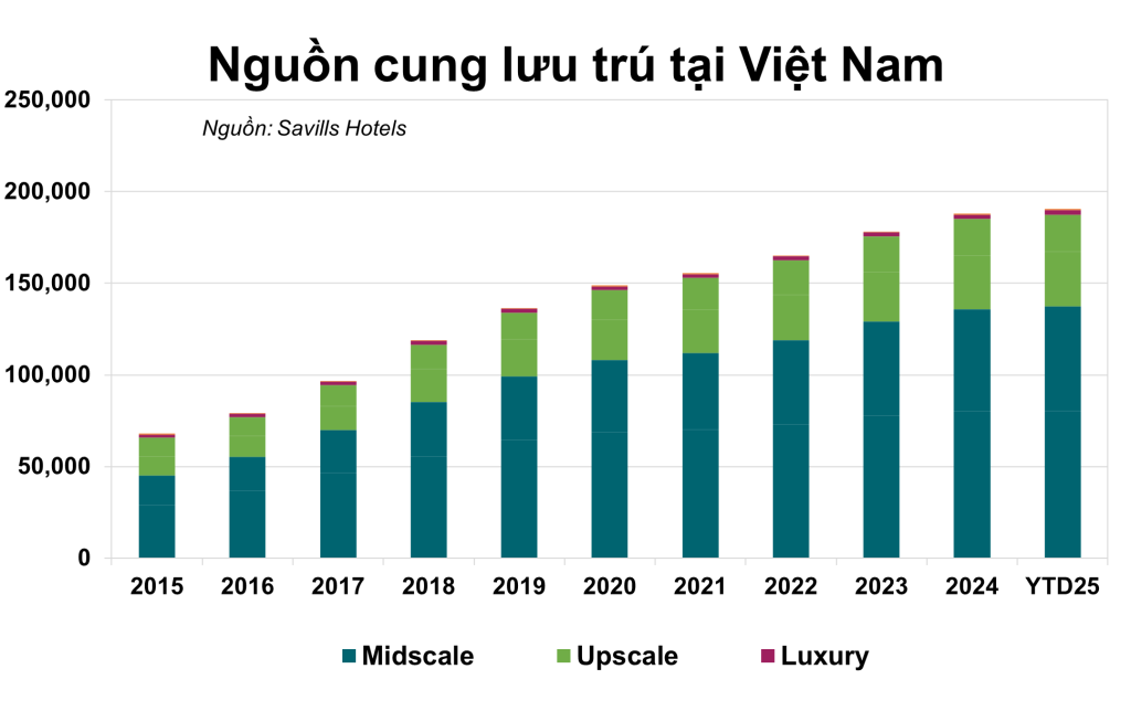 Dù vậy, báo cáo cho thấy khoảng 68% khách sạn vẫn do chủ sở hữu trực tiếp vận hành – một tỷ lệ cao so với khu vực. Điều này phản ánh hai thực tế: thị trường còn nhiều khách sạn vận hành dưới chuẩn và dư địa nâng cấp – chuyển đổi mô hình – hợp tác thương hiệu, vẫn rất lớn.
